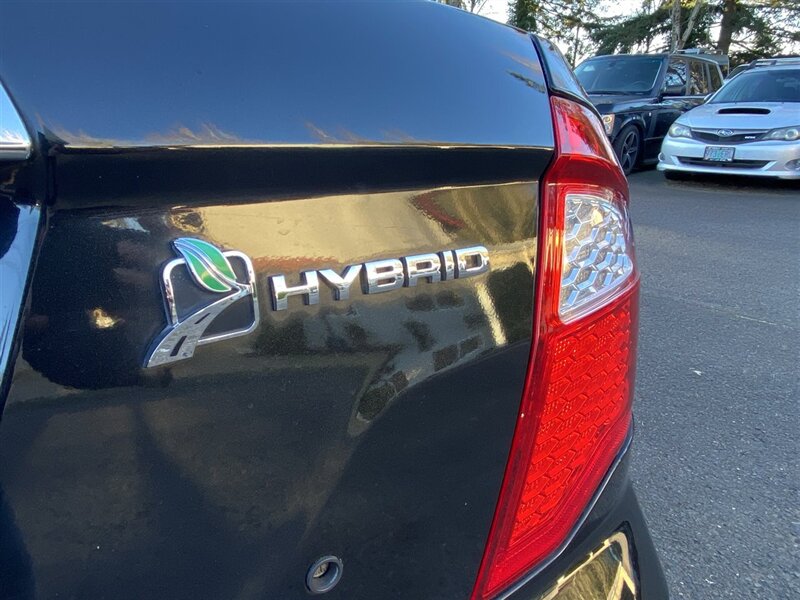 - Exterior: Tuxedo Black Clearcoat Metallic factory paint, aerodynamic hybrid-specific styling, body-color exterior trim, and factory alloy wheels with low-rolling-resistance tires designed for improved fuel economy. Intermittent windshield wipers and rear window defroster.