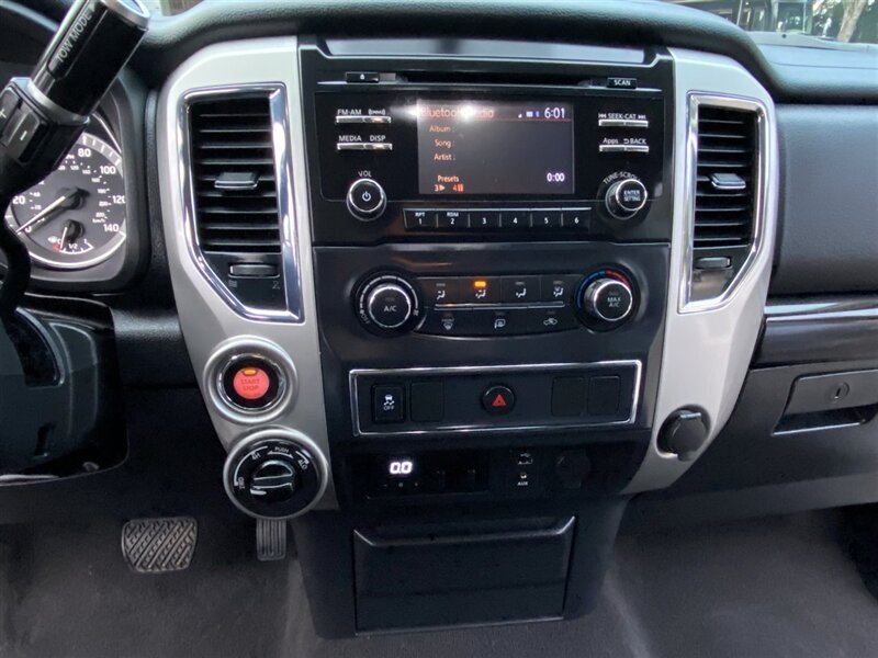 Step inside, and you’ll be greeted by a spacious and comfortable black interior that’s designed for both functionality and style. The Titan XD SV comes equipped with a variety of factory-default features that enhance your driving experience. Enjoy the convenience of keyless entry and push-button start, allowing for quick access and ease of use. The durable cloth seating is not only comfortable but also easy to maintain, making it a practical choice for everyday use.