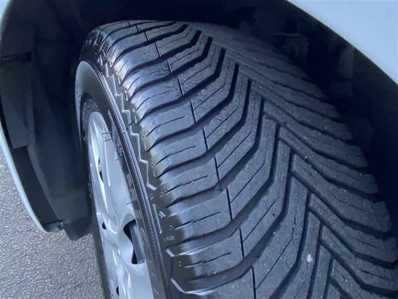 Safety and convenience features from the factory include a rearview camera, anti-lock braking system (ABS), electronic stability control and traction control, dual-stage front airbags, side-impact and side curtain airbags, and a tire pressure monitoring system. Exterior appointments in Oxford White showcase halogen headlamps and practical 16-inch steel wheels with covers wrapped in all-season tires, providing a clean, understated look and dependable road manners.