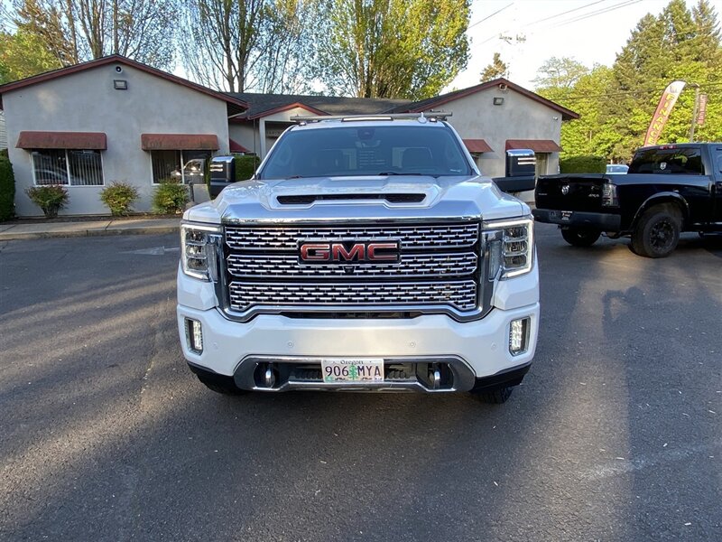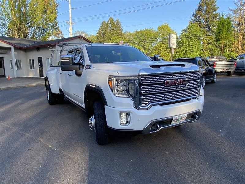 2021 GMC Sierra 3500 Denali — White exterior, Black interior. This heavy-duty Denali pairs class-leading capability with premium refinement. Powered by a Duramax 6.6L Biodiesel Turbo V8 producing 445 hp and 910 lb-ft of torque, the engine is mated to an Allison automatic transmission engineered for HD duty. The factory powertrain and chassis are designed for serious towing and hauling, with robust cooling, heavy-duty suspension tuning and integrated towing features to deliver confidence under load. Exterior features reflect the Denali’s upscale orientation: Denali-exclusive grille with bright chrome accents and signature badging, full LED headlamps and taillamps, chrome mirror caps and trim, and durable alloy wheels. Large heated and power-adjustable towing mirrors, illuminated steps and available spray-in bed protection are factory-installed to balance capability with convenience and curb appeal. The interior is finished in Black leather-appointed trim and is built for comfort on long hauls. Standard Denali appointments typically include heated and ventilated front seats, heated rear outboard seats, a heated leather-wrapped steering wheel, and power-adjustable front seats with driver memory. The cabin is well-appointed with genuine materials and thoughtful storage, plus tri-zone automatic climate control to keep everyone comfortable. Technology and safety are well-covered by factory systems. The GMC infotainment platform supports Apple CarPlay and Android Auto, bluetooth hands-free calling and audio streaming, multiple USB ports and a premium Bose audio system for a clear and satisfying listening experience. Driver-assistance and safety equipment commonly factory-installed include a rearview camera, parking sensors, blind-zone/side blind zone alert, rear cross-traffic alert, stability control, traction control and multiple airbags. Denali models also come with convenience features such as keyless entry and push-button start and available factory telematics (OnStar) for added security and support. This Sierra 3500 Denali is in excellent overall condition and carries a clean CARFAX report. For more information on factory-installed equipment, available towing configurations, or to schedule a personal inspection and test drive, please contact us — we’ll be glad to assist. Marvelous Motors 17835 SW Pacific Hwy Tualatin, OR 97062 (971) 227-8746